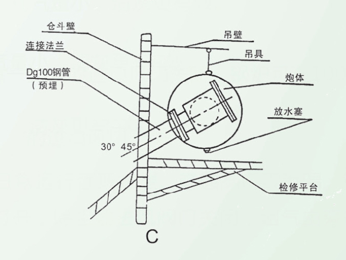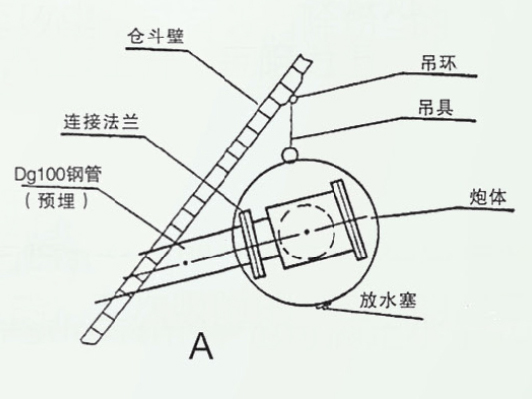 1、安裝時空氣炮噴射接管(倉內(nèi)部分)應(yīng)向下布置,其角度與水平線不得小于1 5℃。