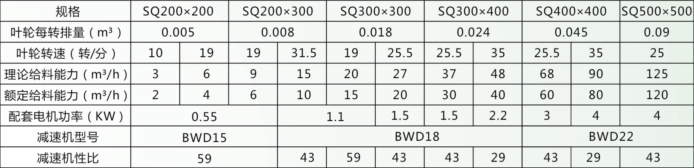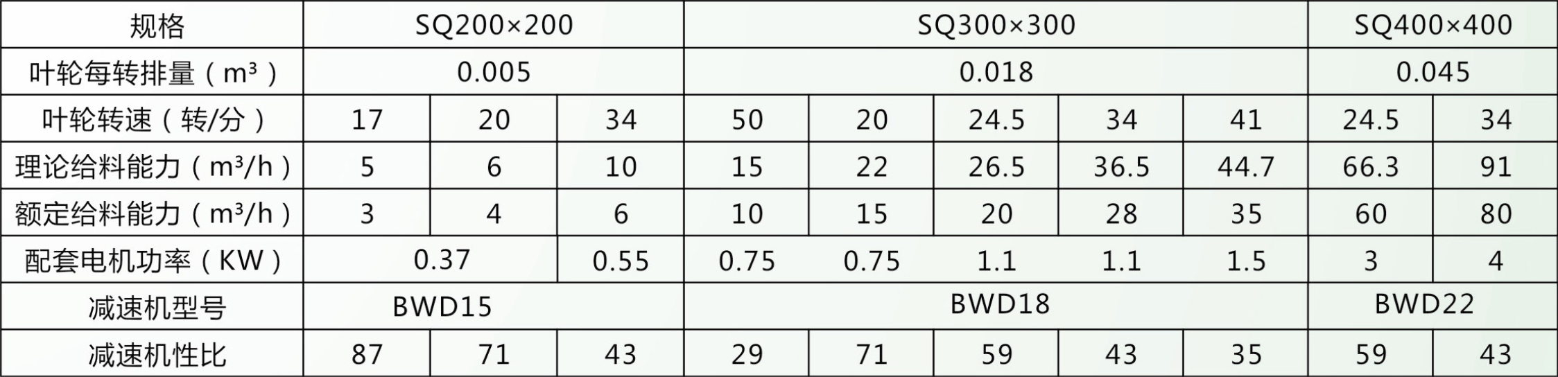 本產(chǎn)品在結(jié)構(gòu)上分為A型和B型,A型為針輪擺線減速配用鏈條傳動,其技術(shù)參數(shù)見表一;B型為直聯(lián)式傳動,技術(shù)參數(shù)見表二,產(chǎn)品規(guī)格以口徑劃分,每種規(guī)格均給出幾種給料能力供選擇,如有特殊要求,可代為設(shè)計制造。