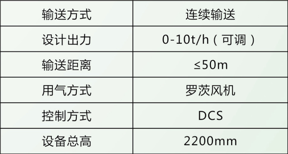 本設(shè)備同樣用于石灰石粉輸送系統(tǒng),適用于爐前近距離輸送,接入DCS控制,輸送量爐煙氣含硫量檢測信號,通過DCS程序調(diào)整石灰石噴射量,達到好的脫硫效果。